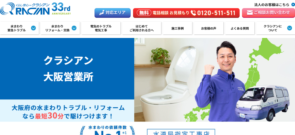 | ホームページ記載のメッセージ | トイレや蛇口、排水管など様々な場所の水回りのトラブルをすぐに解決いたします。 |